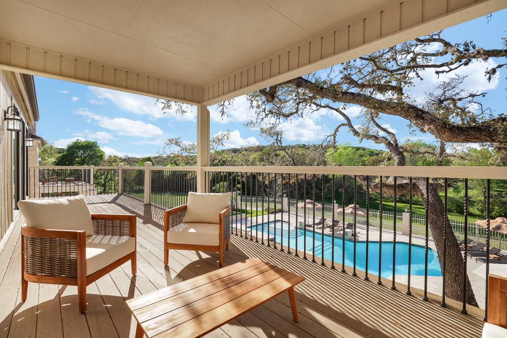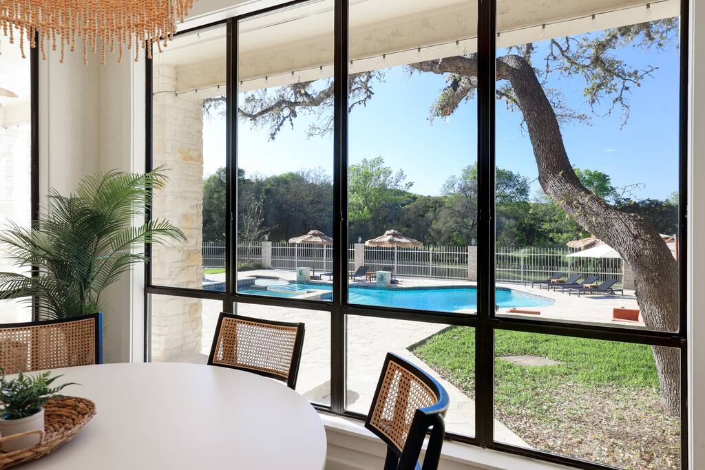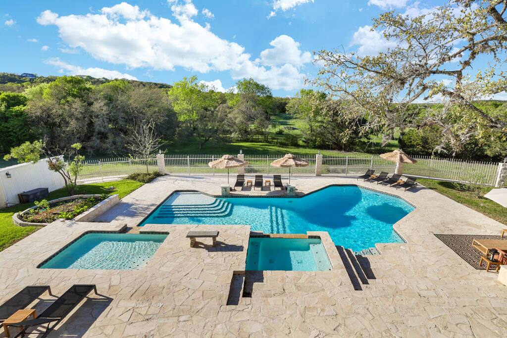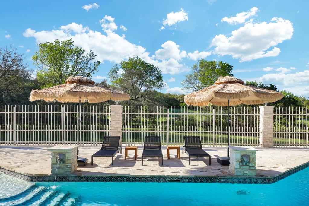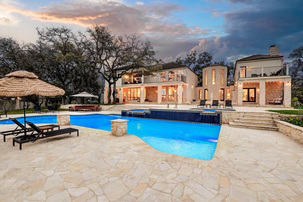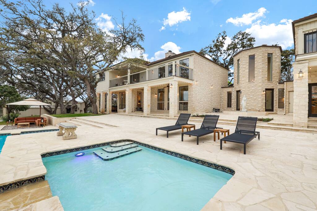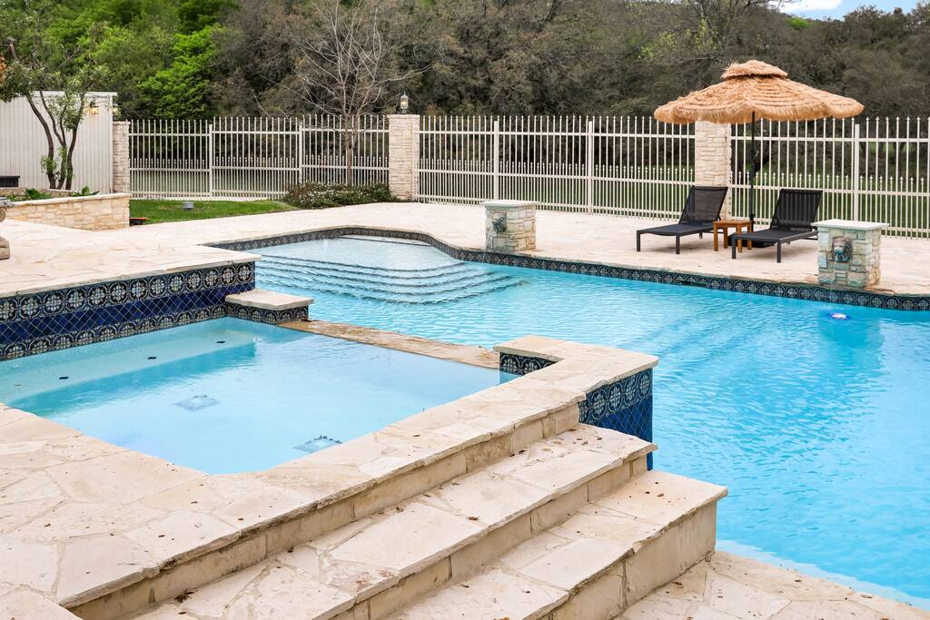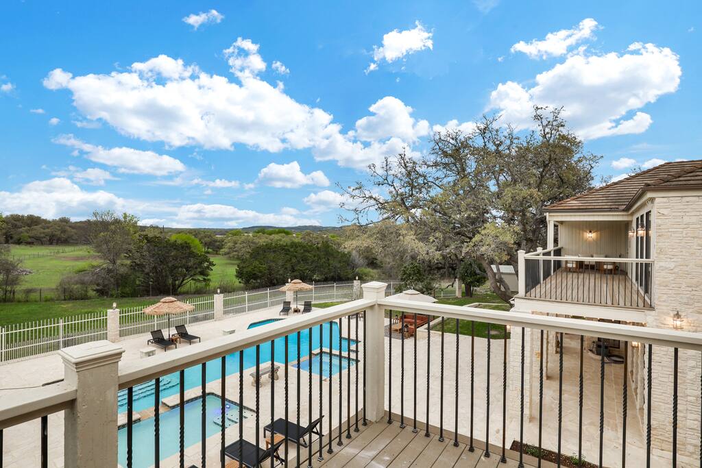 Welcome to Majestic Oak, a stunning 6,500 sq ft estate on 4 private acres, perfect for your next group getaway. This beautiful home sleeps up to 16 guests with a master suite, king bedrooms, and custom bunk room. Relax by the resort-style pool, soak in the hot tub, or play billiards in our game room. The chef's kitchen makes hosting memorable meals effortless. Located just 15 minutes from Six Flags, La Cantera, and The Rim - peaceful privacy with easy access to San Antonio's top attractions.