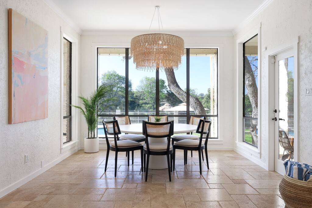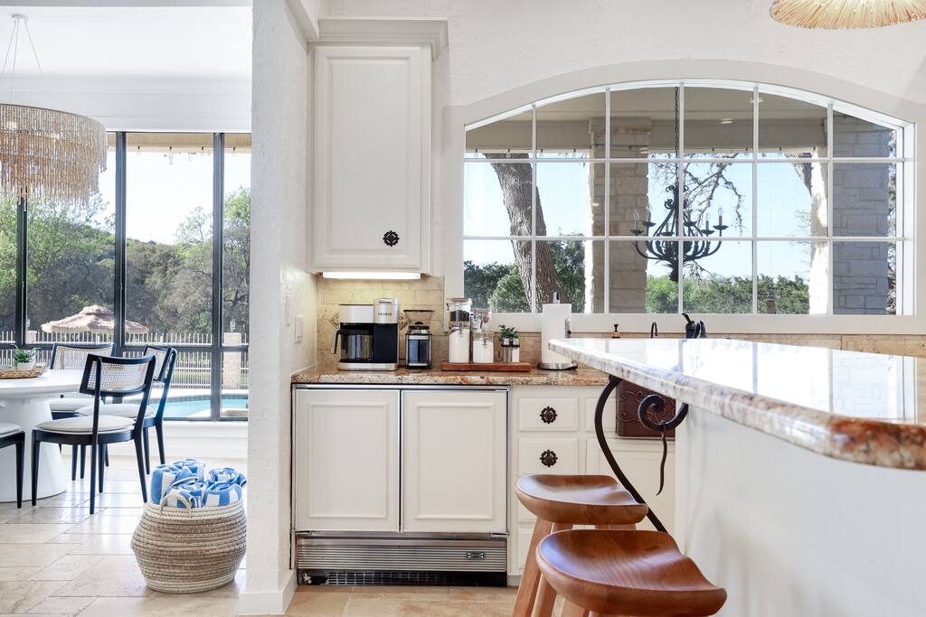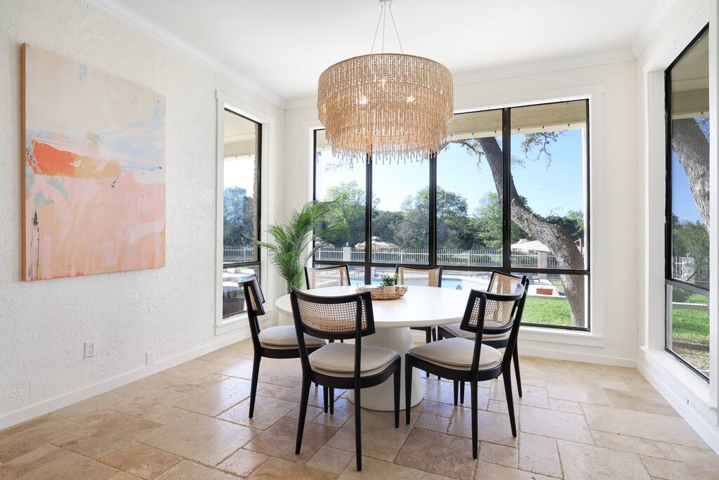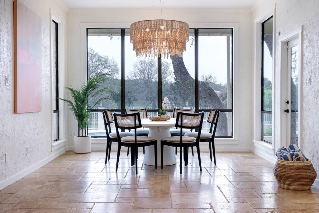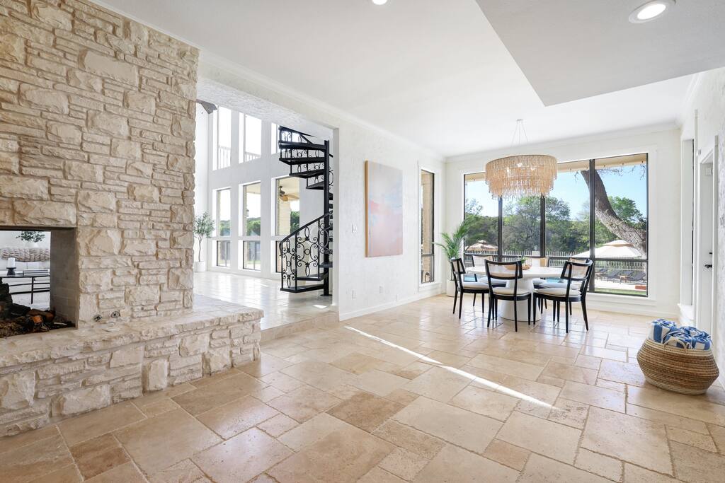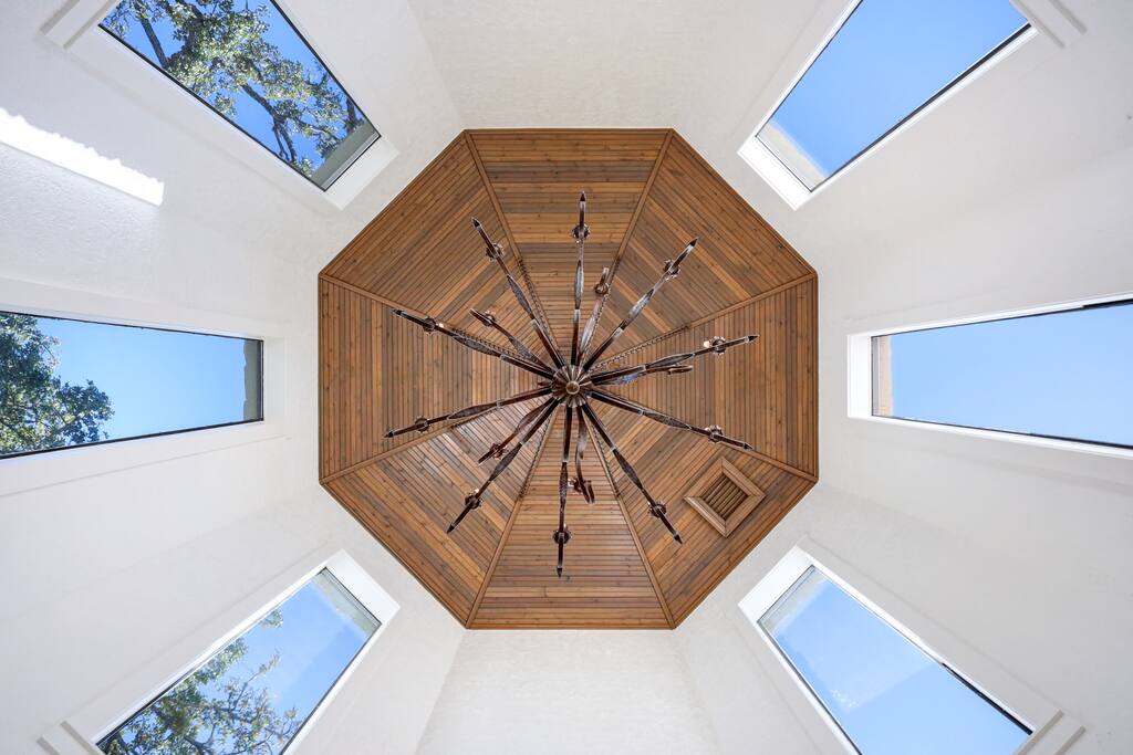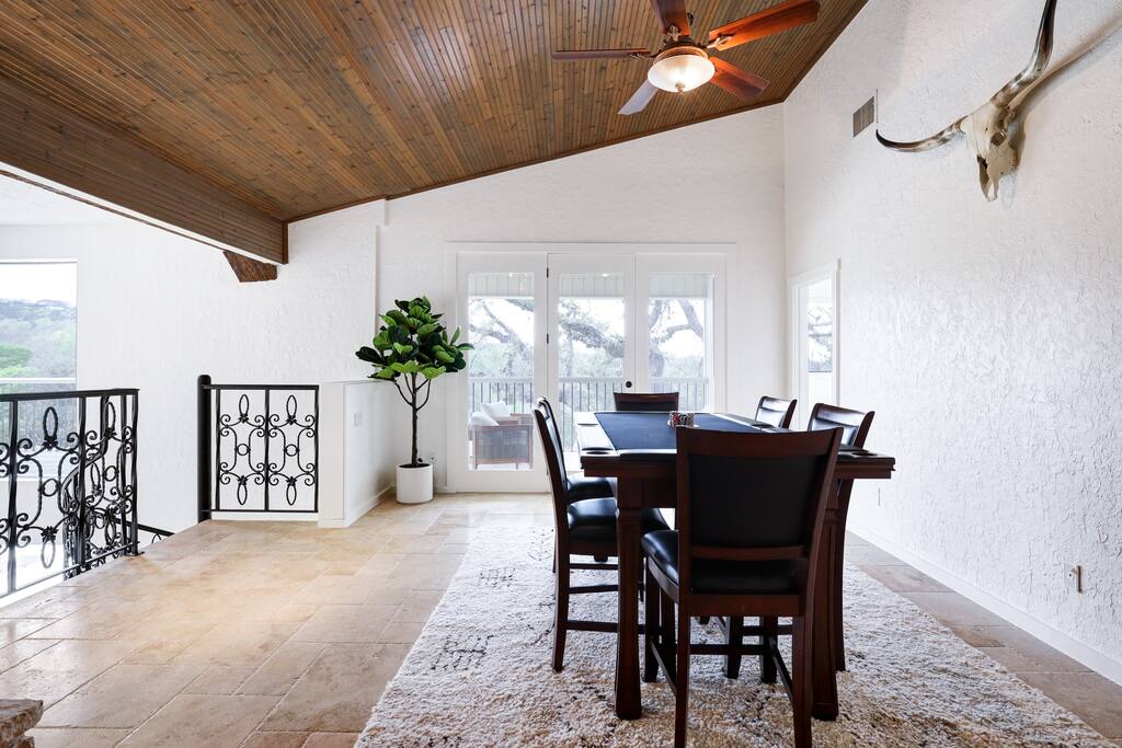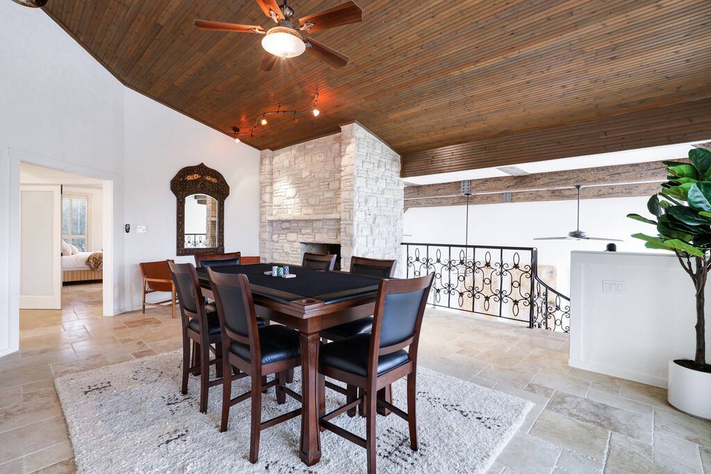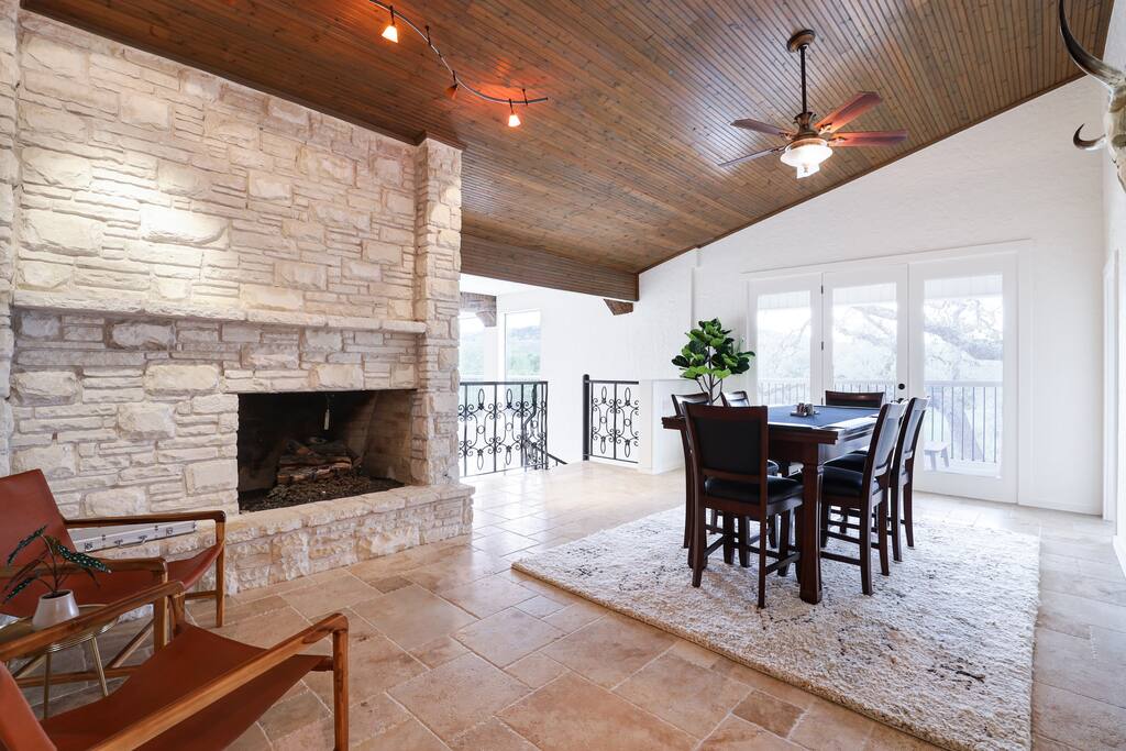 Welcome to Majestic Oak, a stunning 6,500 sq ft estate on 4 private acres, perfect for your next group getaway. This beautiful home sleeps up to 16 guests with a master suite, king bedrooms, and custom bunk room. Relax by the resort-style pool, soak in the hot tub, or play billiards in our game room. The chef's kitchen makes hosting memorable meals effortless. Located just 15 minutes from Six Flags, La Cantera, and The Rim - peaceful privacy with easy access to San Antonio's top attractions.