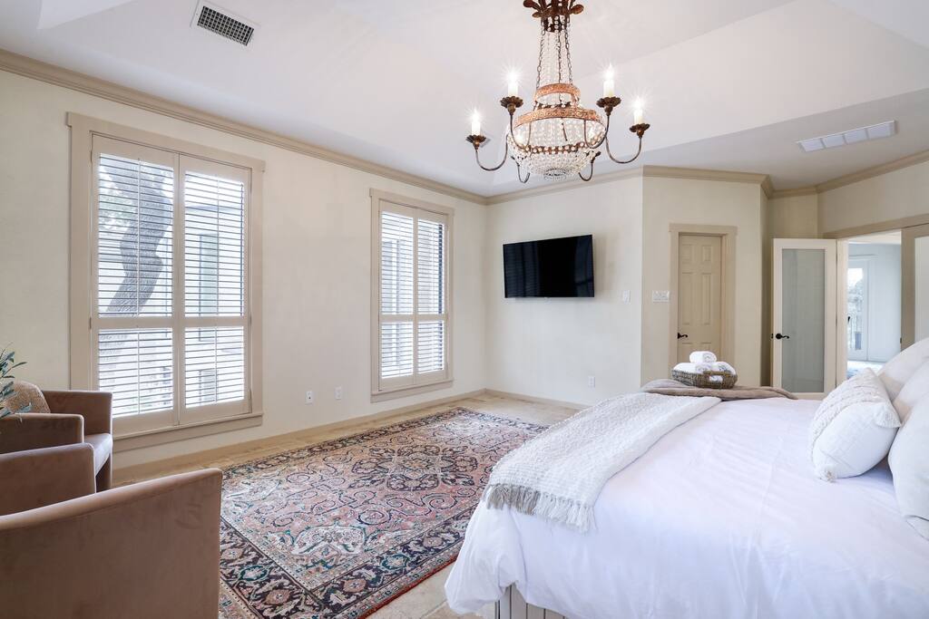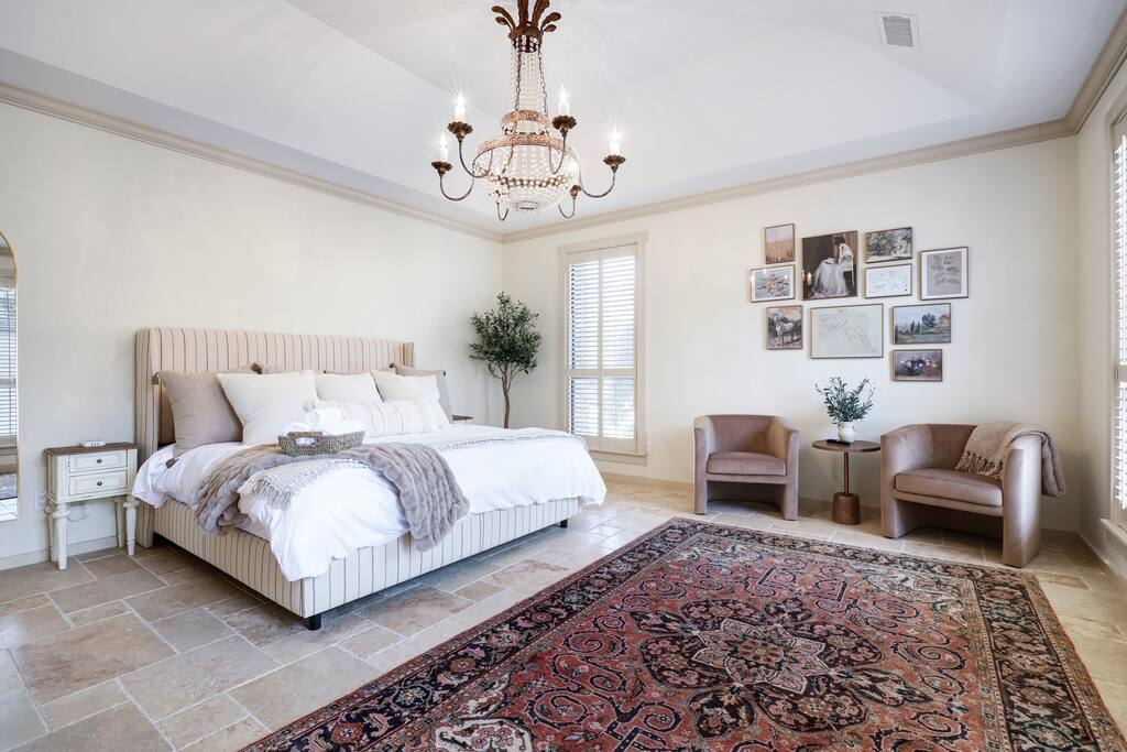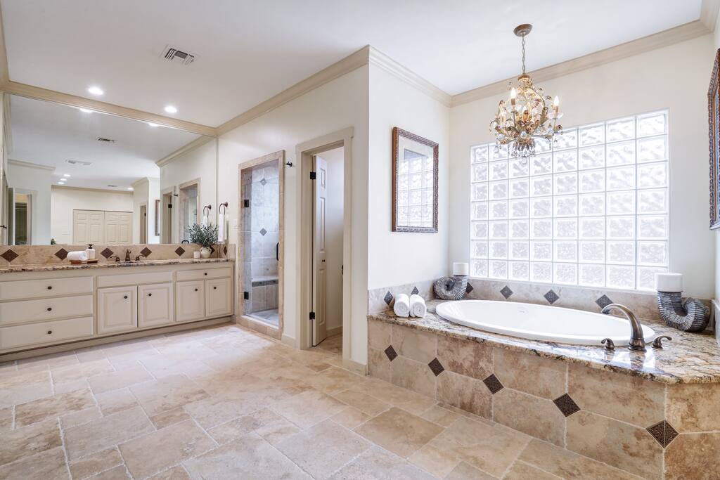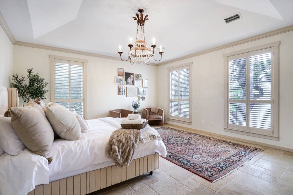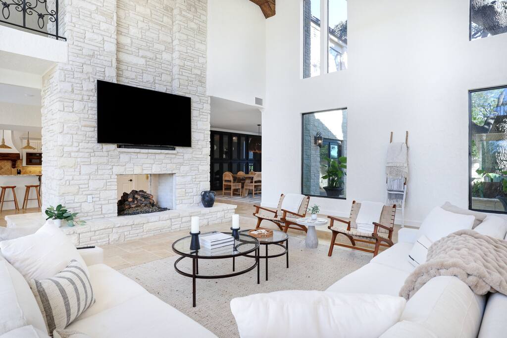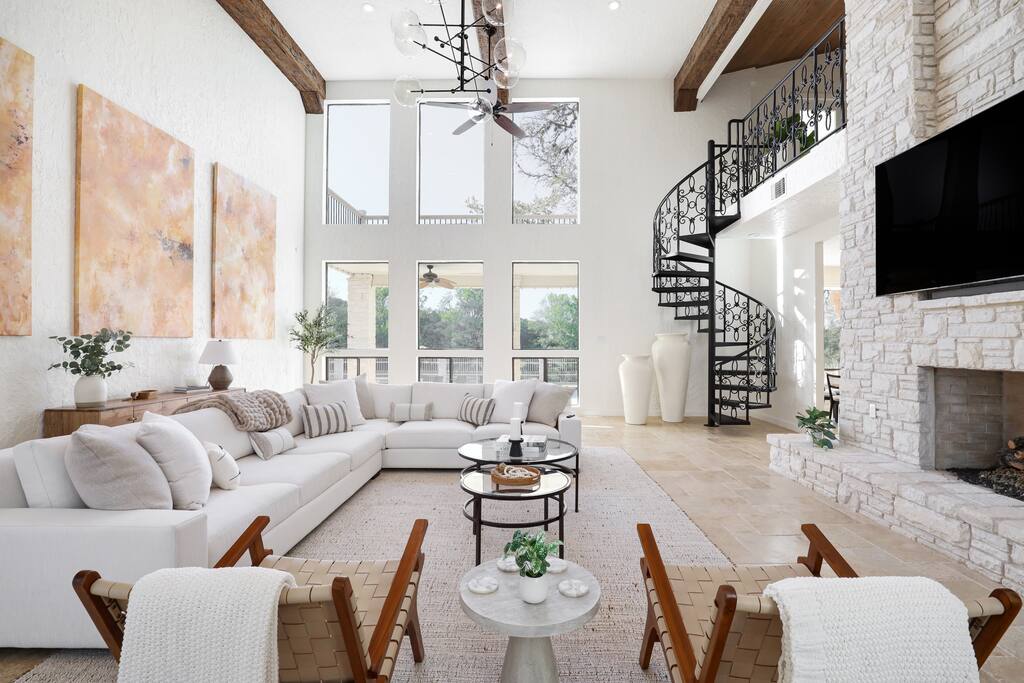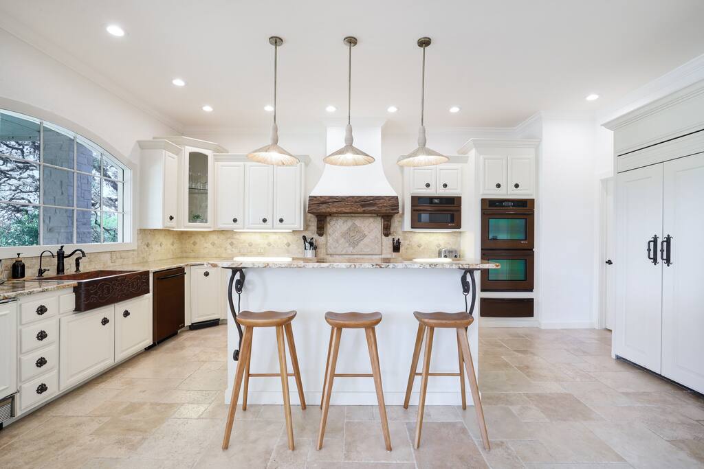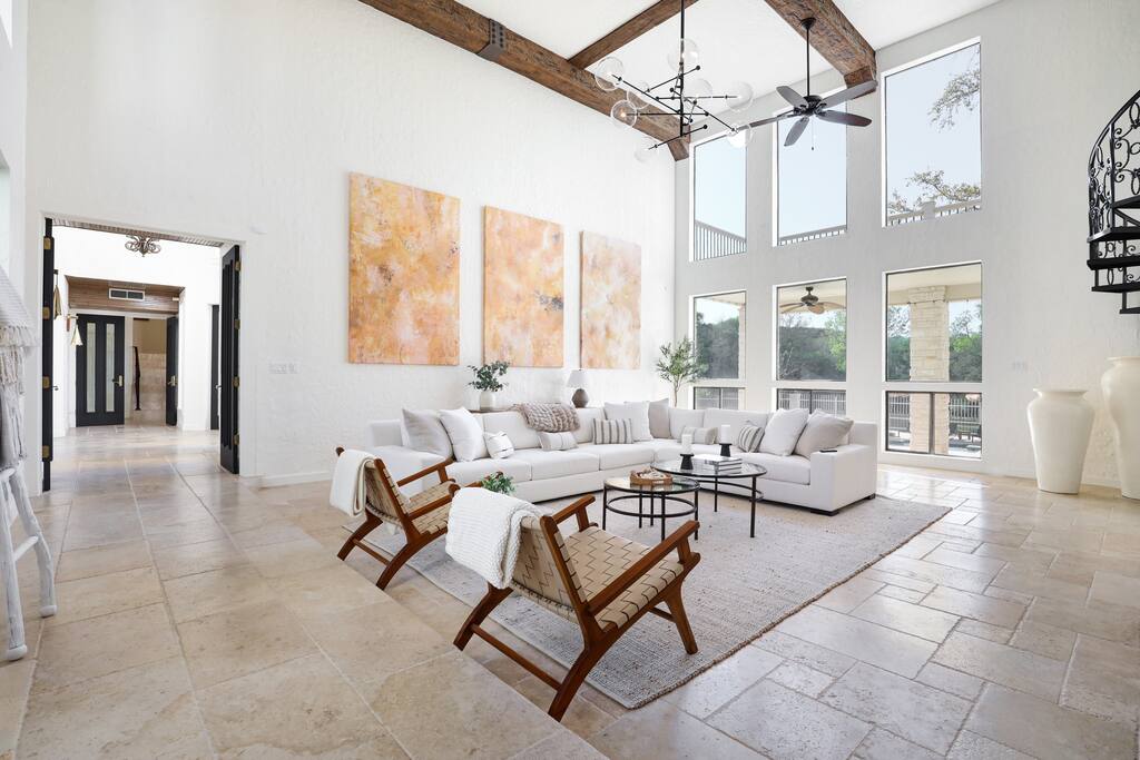Welcome to Majestic Oak, a stunning 6,500 sq ft estate on 4 private acres, perfect for your next group getaway. This beautiful home sleeps up to 16 guests with a master suite, king bedrooms, and custom bunk room. Relax by the resort-style pool, soak in the hot tub, or play billiards in our game room. The chef's kitchen makes hosting memorable meals effortless. Located just 15 minutes from Six Flags, La Cantera, and The Rim - peaceful privacy with easy access to San Antonio's top attractions.
