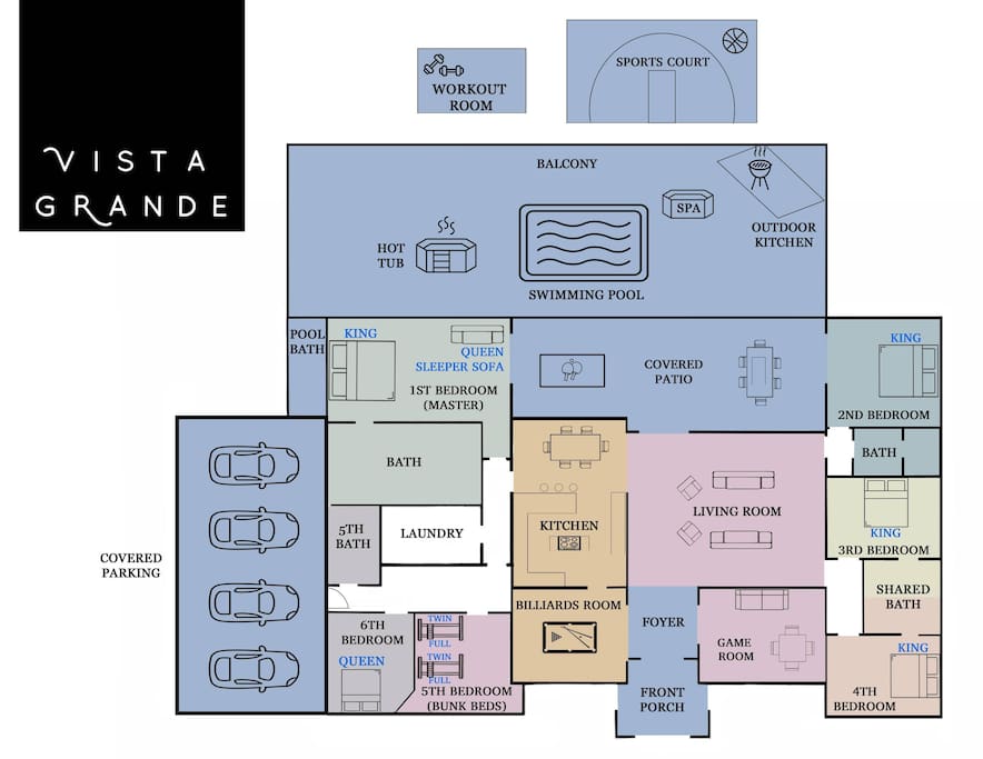There is no life guard, private pool care with small children needed. Only soft ambient music allowed throughout the day by the pool/patio or Sports Court, Quiet time after 10pm